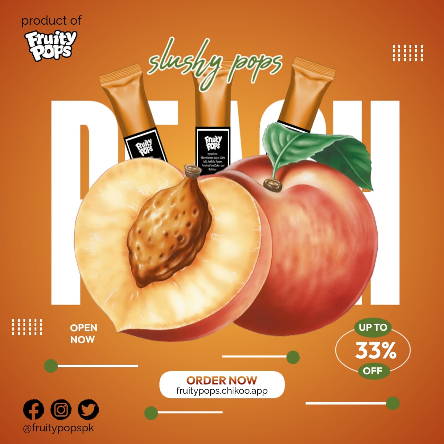 Ice Lollies Pouch Of 12 Lollies Single Flavour " PEACH" II FruityPops II Popsicle II Ice Candy II Slushy Pops II Freeze Ice Pops II